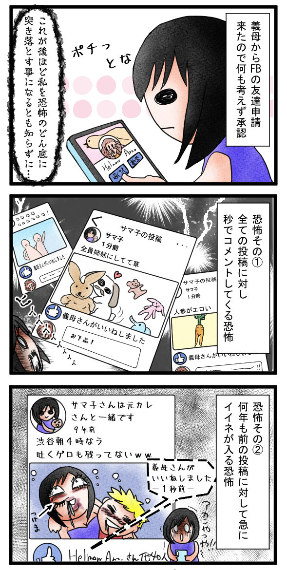 義母がフェイスブックで友達リクエストしてきたので承認した結果… 2022年08月07日 23:43 コメントは常に1ゲトな義母。それも投稿から数分以内に。密かにFBポリスと呼んでいる。 「オージーのフレンドリーすぎる義母がヤバい」カテゴリの最新記事 タグ :#義母#SNS < 前の記事次の記事 >